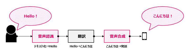 例えば、明石家さんまさんが出演しているCMでおなじみの、ポケトー ク(ソースネクスト社)は、以下の流れで『音声認識』と『音声合成』の両方の技術が活かされています。