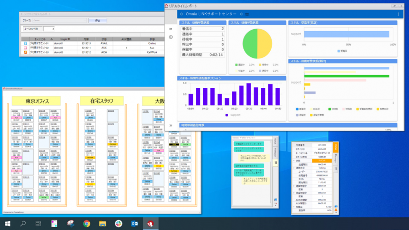 Omnia LINKではリアルタイムレポート用アプリケーションとして、「watchover(ウォッチオーバー)」を提供しています。電話番号単位、スキル単位での入電状況が確認できるのは勿論のこと、シートマップ機能も標準装備しています。