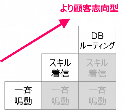 ここまでくるとシステム的にもPBXのみで実現できるわけではなく、IVR活用や顧客情報が集約されているCRMと連携して実現させる世界になってきます。