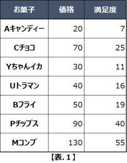 次の【表.1】は、お菓子の価格とその満足度を表しています。