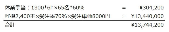 もしコールセンターが1日休業することになった場合、経済的損失は以下の通りです。