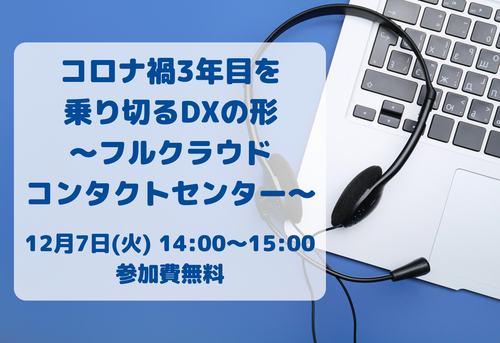 今回のセミナーでは、フルクラウドコンタクトセンターのデモンストレーションを実施いたしますので、皆さまお誘いあわせの上、ご参加ください。