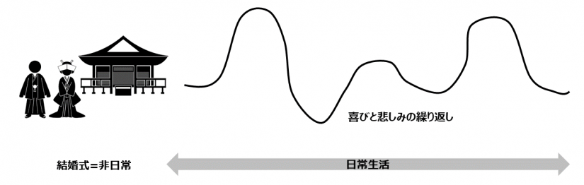 「結婚式」はプロジェクトなので、達成感があり、成功や失敗を定義できるが、「結婚生活」は「ゴーイングコンサーン」であり、ある一点を捉えて成功や失敗を定義することは難しい。だから、オペレーションにおける成功とは「成功と失敗を繰り返しながら、改善を進めオペレーションを進化させること」である、と定義した。