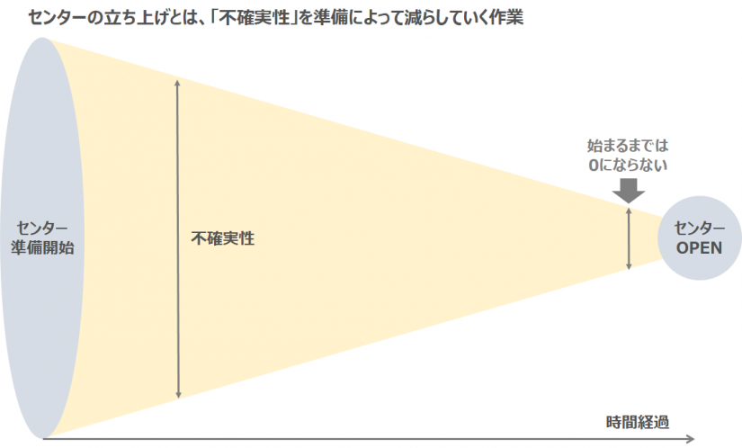 もちろん上述したように、オペレーションは「ゴーイングコンサーン」が前提なので、センターオープン日に成功したからといって、そのコールセンターは成功だ、とは言えないのだが、「センターオープン日はまず成功だった」と感じてスタートを切れるか、「初日から失敗した」と思いながらスタートするのかによって、安定稼働までの期間も変わってくるし、何よりも気持ちが変わってくる。だからセンターオープン日は何としても成功させたい。