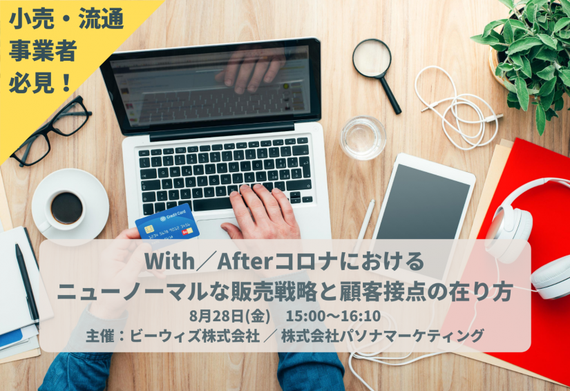 ビーウィズ株式会社(本社:東京都新宿区、代表取締役社長 森本 宏一、以下ビーウィズ) は、株式会社パソナマーケティング様と「【zoomオンラインセミナー】小売・流通事業者様必見!With/Afterコロナにおけるニューノーマルな販売戦略と顧客接点の在り方」を開催します。