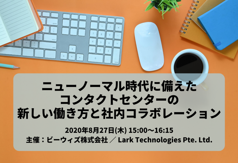 ビーウィズ株式会社(本社:東京都新宿区、代表取締役社長 森本 宏一) は、Lark Technologies Pte. Ltd.様と、オンラインセミナー「ニューノーマル時代に備えた コンタクトセンターの新しい働き方と社内コラボレーション」を開催いたします。