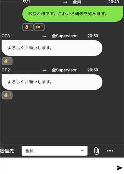 チャット機能により、通話だけでなくテキストでのフォローや、連絡・資料の共有等も行うことができます。また、リアクション機能も備えており、円滑なコミュニケーションを行うことができます。